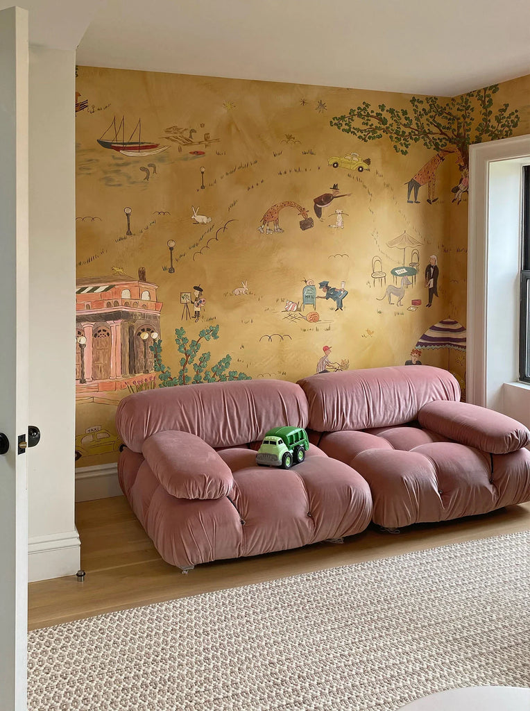 2 - Calcola quanti rapporti di disegno (la misura dell’altezza del disegno) occorrono per coprire l'altezza della parete. In Coeurs de Marie di Pierre Frey - a destra - il disegno intero misura in altezza 52cm. Per una parete di 300cm occorrono 6 rapporti (52x6=312).