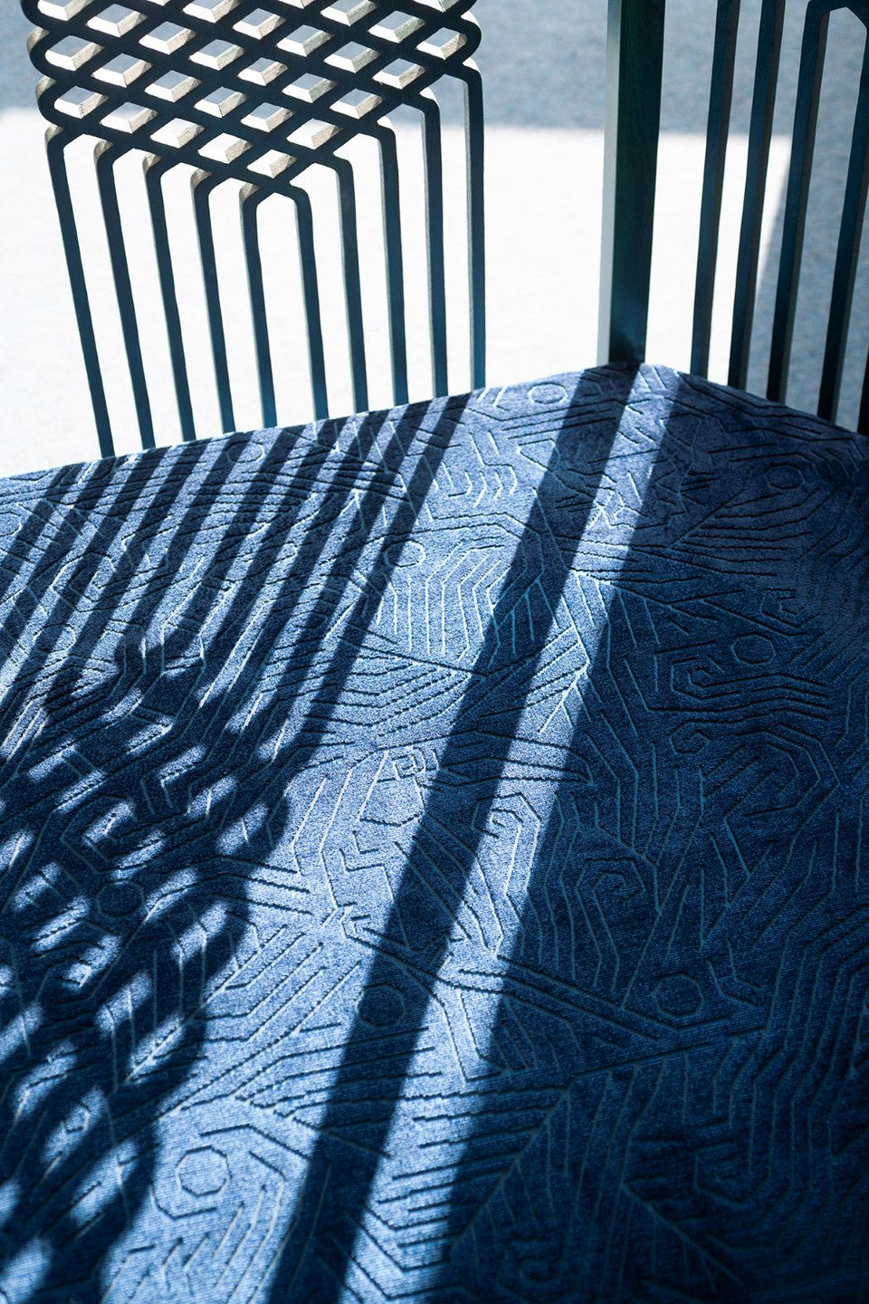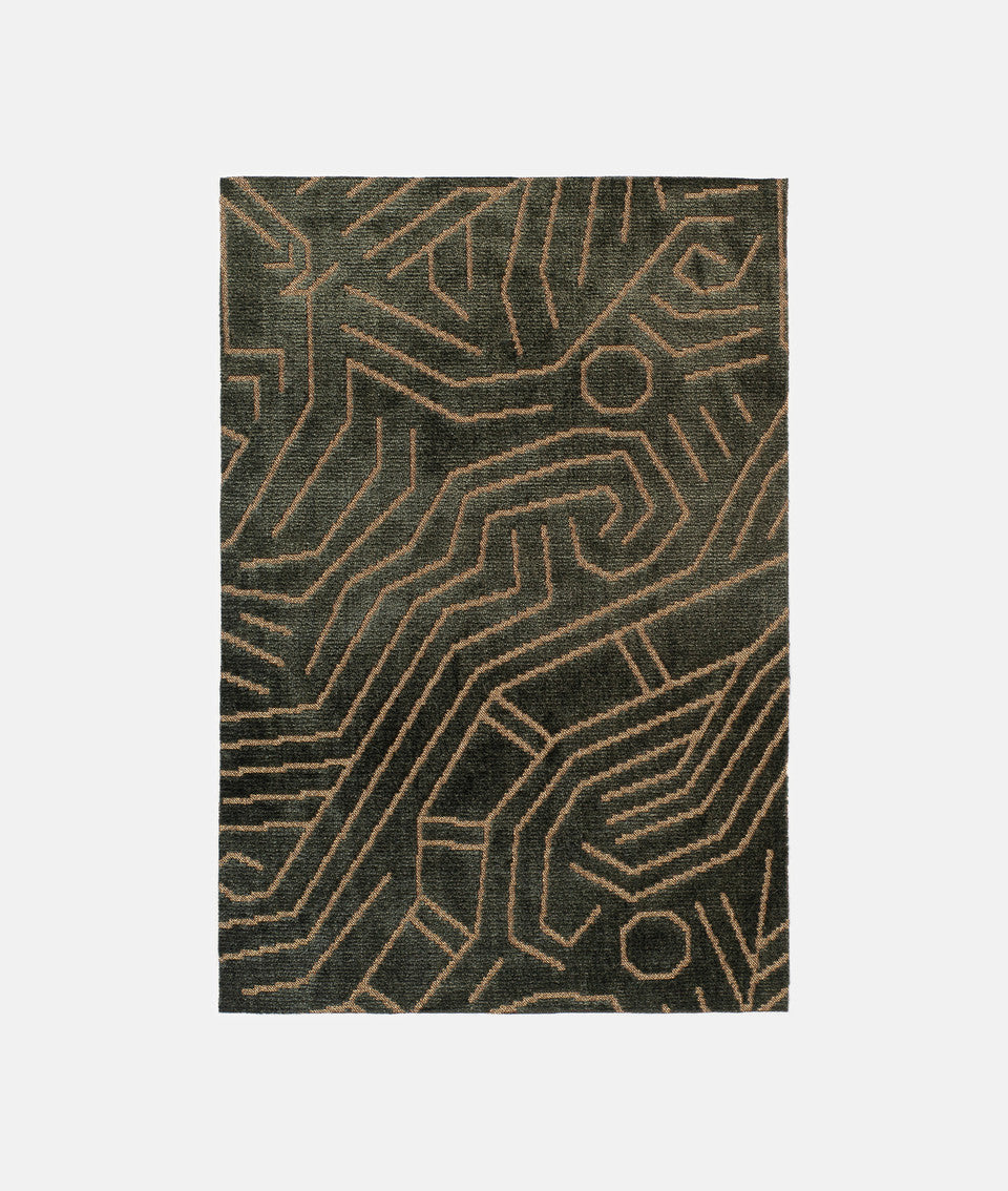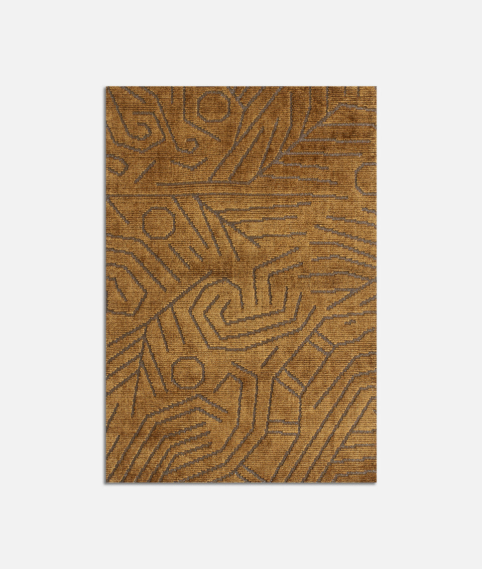 Tessuto in velluto jacquard, compatto e morbido al tatto, caratterizzato da un fondo metallico luminoso su cui prende vita una foresta segreta popolata da serpenti sinuosi, tigri, tucani e scimmie. Il motivo, dalla linea frammentata, scolpisce la superficie come un delicato bassorilievo, creando un raffinato effetto tridimensionale.