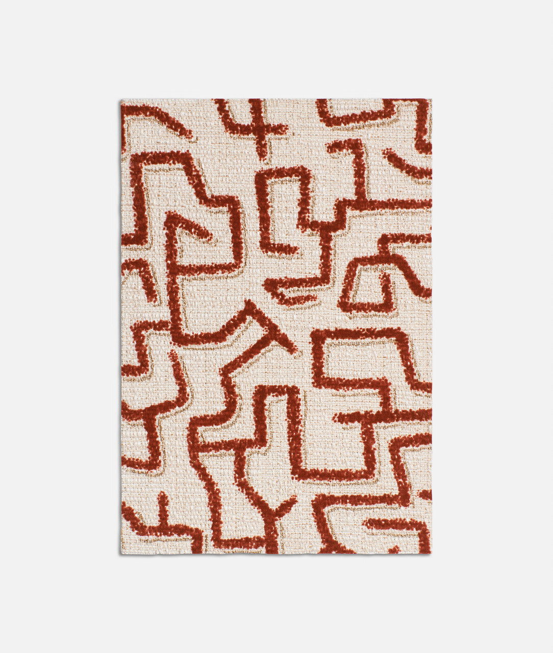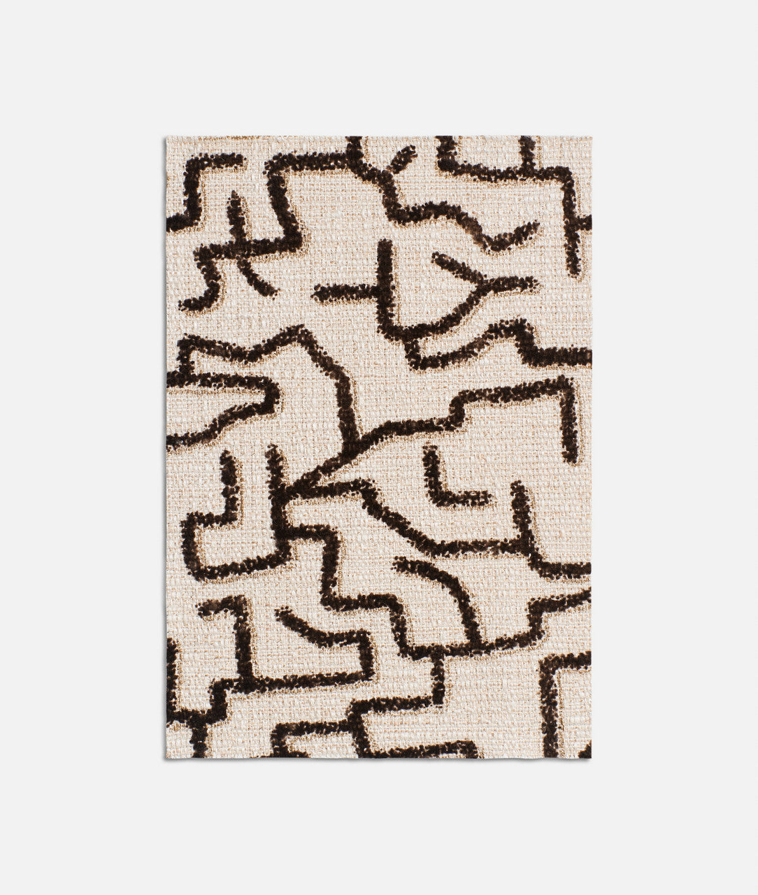 Tessuto in morbida trama panama, caratterizzato da un originale motivo grafico che unisce suggestioni delle pitture rupestri africane e della calligrafia orientale. I procedimenti di floccaggio e serigrafia metallica conferiscono al fondo testurizzato, irregolare e luminoso di Aristotele una sottile tridimensionalità.