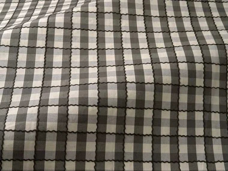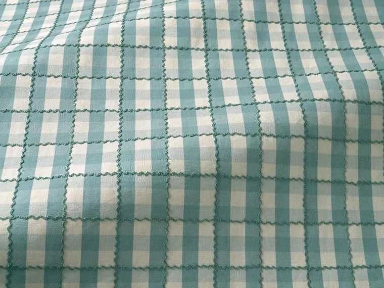 Tessuto in cotone Pierre Frey a quadri, ispirato allo stile gustaviano, con una tessitura e un ricamo leggermente ondulati, tono su tono. Ha un fascino nostalgico e allegro che lo rende perfetto per tende, tappezzeria e tanti altri progetti d’arredo.